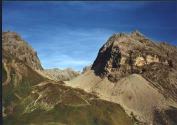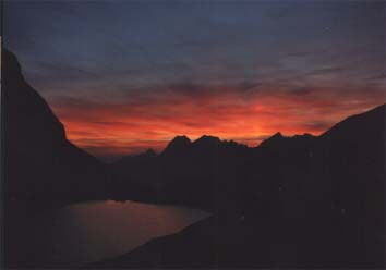 Von der Fiderepasshütte hatte man eine wunderschöne Aussicht auf den Weg, den wir morgen gehen wollten und auf den Einstieg zum Mindelheimer Klettersteig.