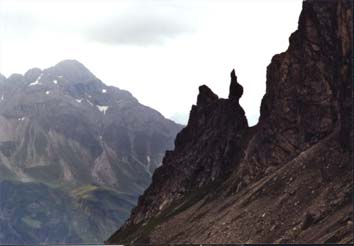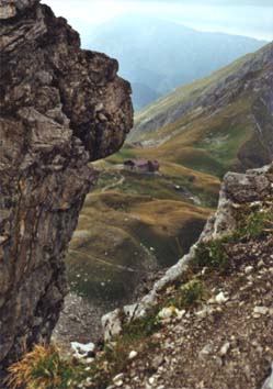 Nach der Gratüberschreitung konnte man durch einen schmalen Felsspalt noch einmal einen Blick auf die Fiderepasshütte werfen.