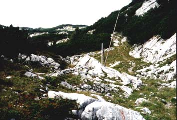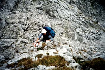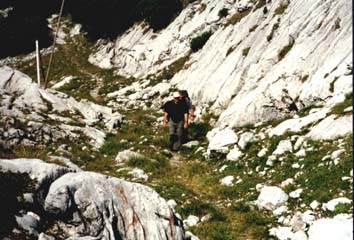 Schon bald zeigte sich, dass Wenzel, Ralf und Volker die bessere Kondition hatten. Es dauerte garnicht lange und sie hatten sich von uns abgesetzt. Von ihnen war nichts mehr zu sehen. Es wäre sicher schöner gewesen, wenn wir zusammengeblieben wären, zumal das Gelände erheblich schwieriger wurde, und ich doch inzwischen ziemlich Schmerzen in meinem vor 8 Wochen operierten Fuss hatte.