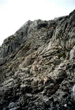 Richtig erschrocken war ich dann, als wir plötzlich vor einer ziemlich steilen Wand standen, und ich sah, dass die Wegmarkierung nach oben zeigte.