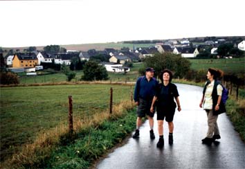 Nach einer ruhigen Nacht in Wenigenrath und einem ausgezeichneten Frühstück starteten wir gegen 9:00 Uhr zu unserer ersten Etappe von 20 Km über Hinzerath nach Gonzerath. Das Wetter war zwar nicht besonders, aber das tat unserer Stimmung keinen Abbruch.