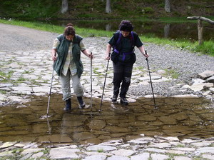 Nach der anstrengenden Überquerung des Baches machen unsere Damen erst mal Pause.