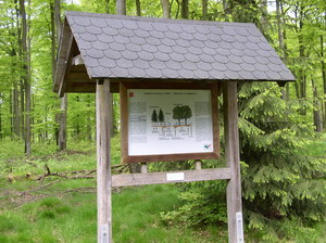 Die Schilder am Waldlehrpfad erklären uns vieles über die Eigenschaften der Bäume.