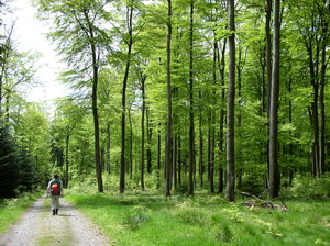 Ein wunderschöner Buchenwald begleitet uns bei sonnigem Wetter auf unserem Weg.